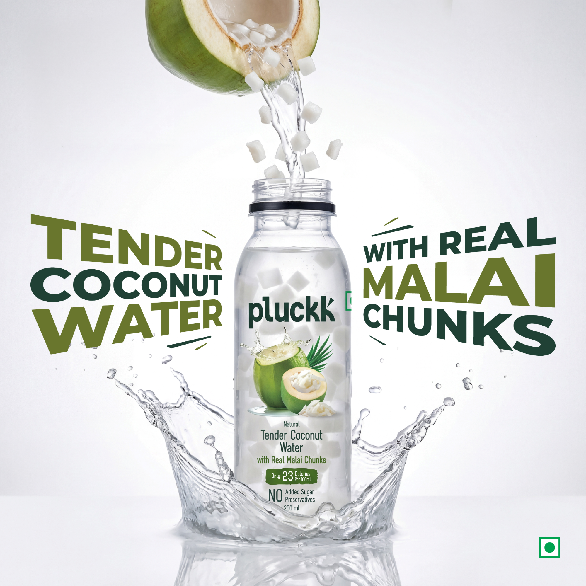 Believe it or not, Pluckk’s Tender Coconut Water with malai chunks is made with just one ingredient, natural coconut water and absolutely nothing else.