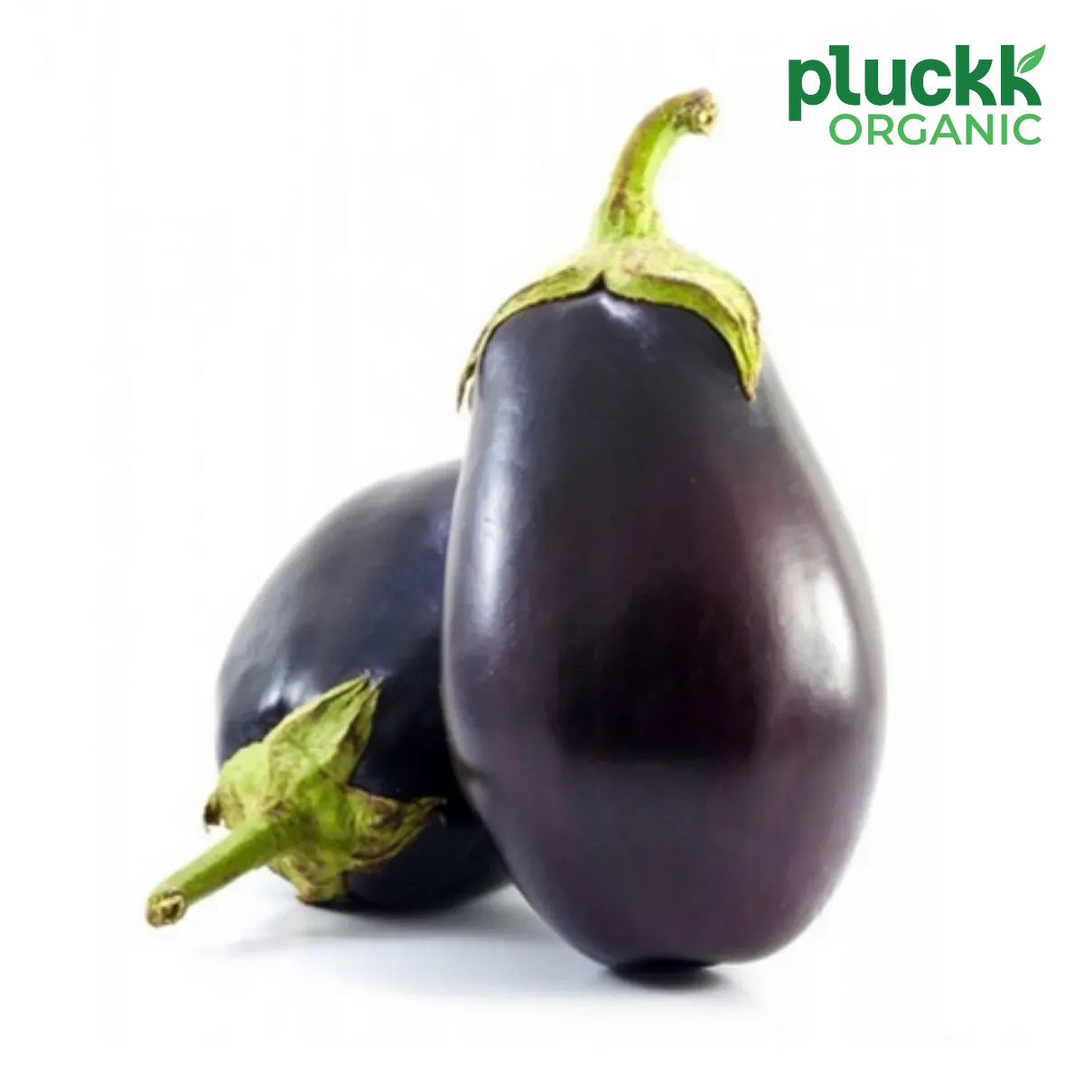 Brinjal, also known as eggplant, is a fruit (and not a vegetable). It has an elongated and cylindrical shape with an approx 8.5cm diameter, 15cm in length, and 300g to 350g per piece. About the taste, brinjal has a mild and slightly bitter taste when raw and changes to slightly sweet, earthy, and savory when cooked.