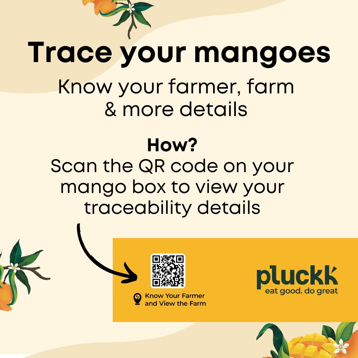 Tracing your mangoes back to its source is a simple with Pluckk. Simply scan the QR code on your mango box to view farmer details, farm location and additional information