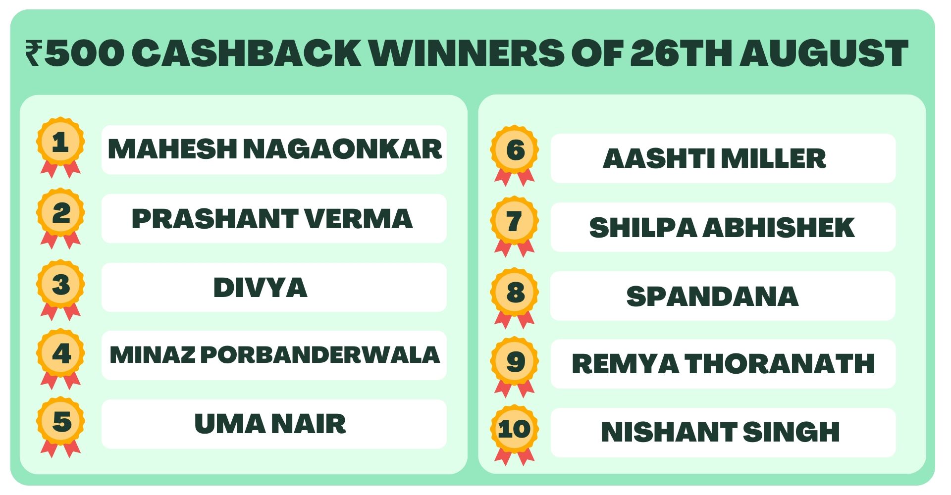 - All winners will also be contacted personally through Whatsapp.