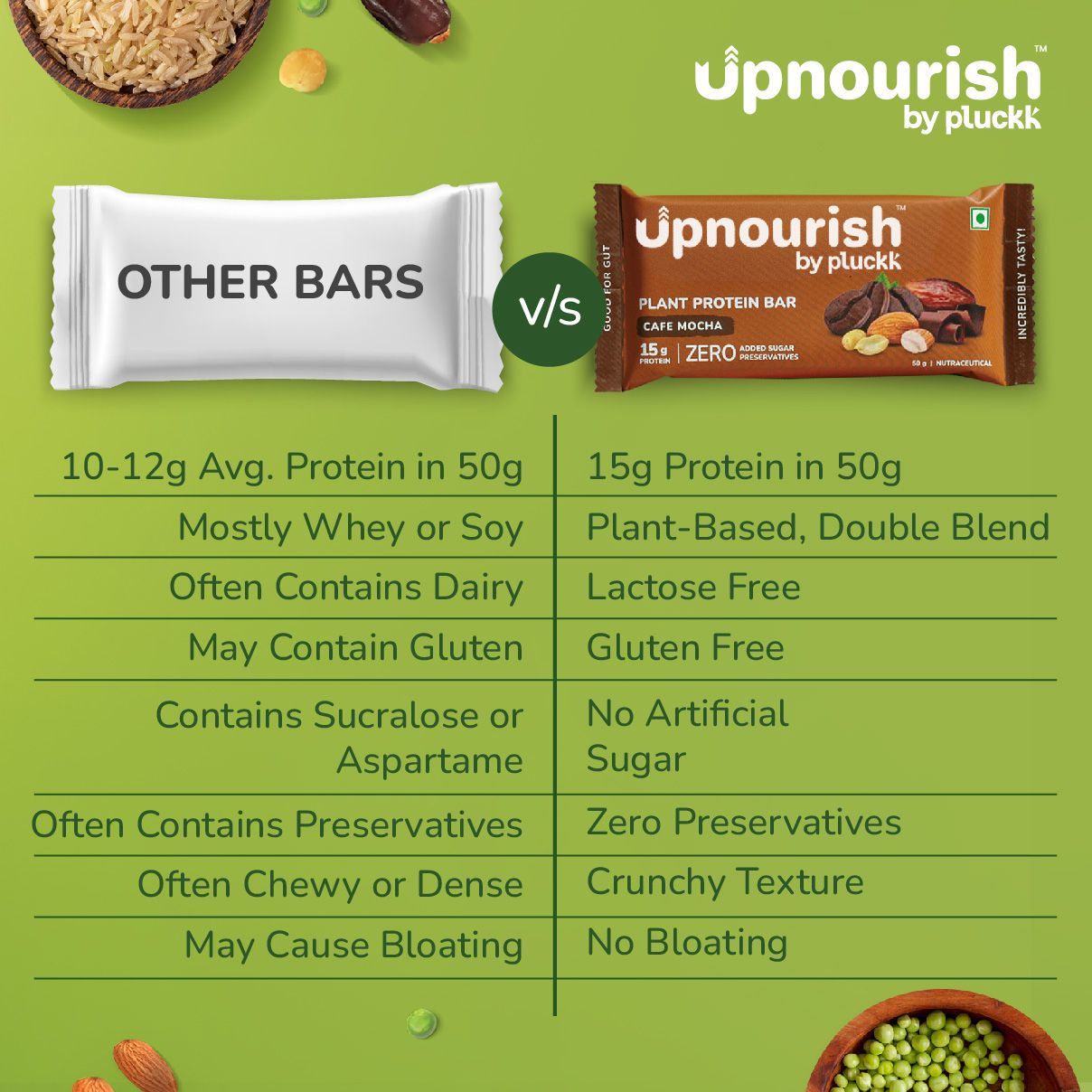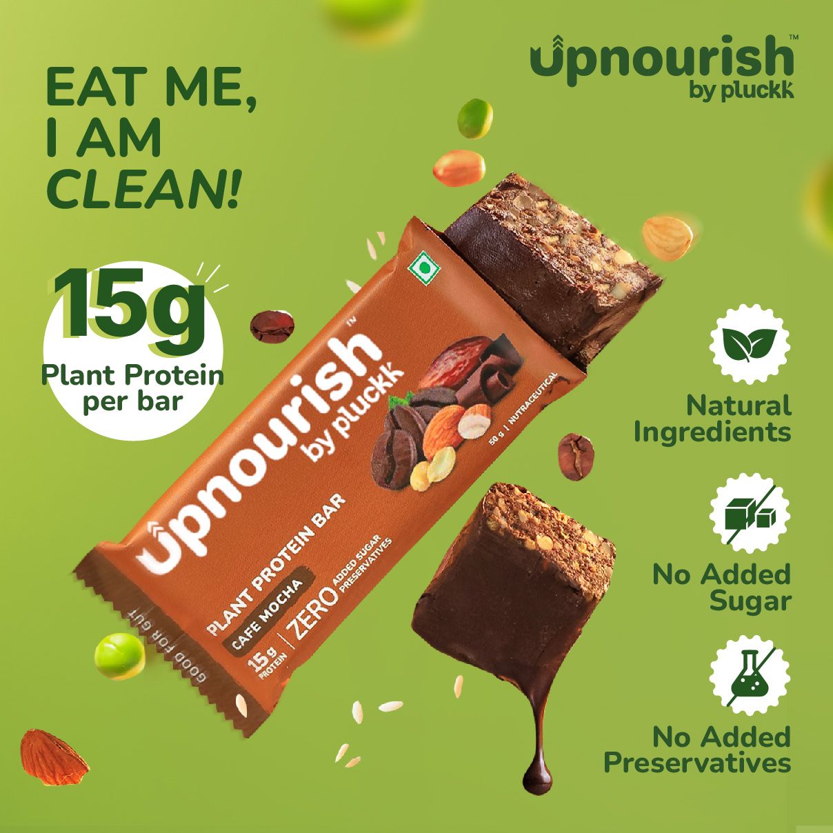 The rich and energizing coffee flavor perfectly balances with the decadent chocolate, making Upnourish Cafe Mocha Bar a guilt-free indulgence on the go. Upnourish bars - fueling your fitness, one bar at a time!