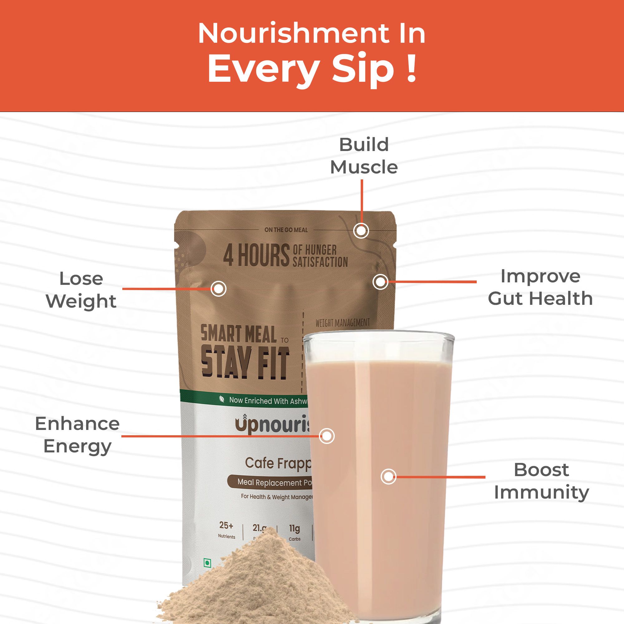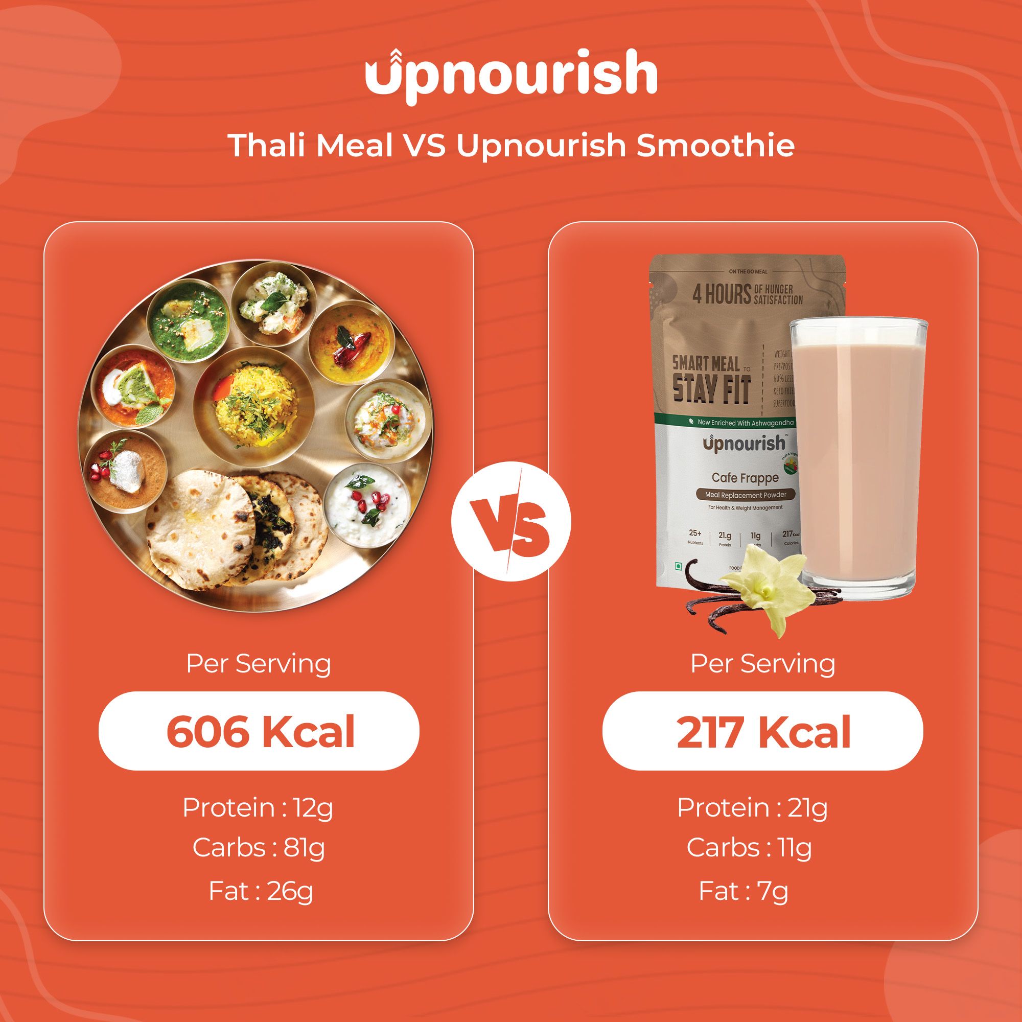 FUEL THE BODY WITH COMPLETE NUTRITION: Our meal replacement smoothies are packed with everything required —21.7g of high protein, 24+ essential vitamins & minerals along with 5.3g of fibre, designed to keep the body energised, lean, & focused.