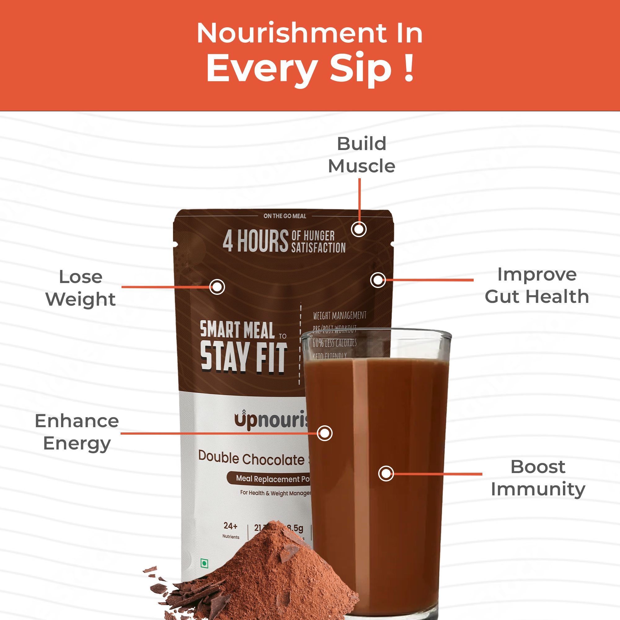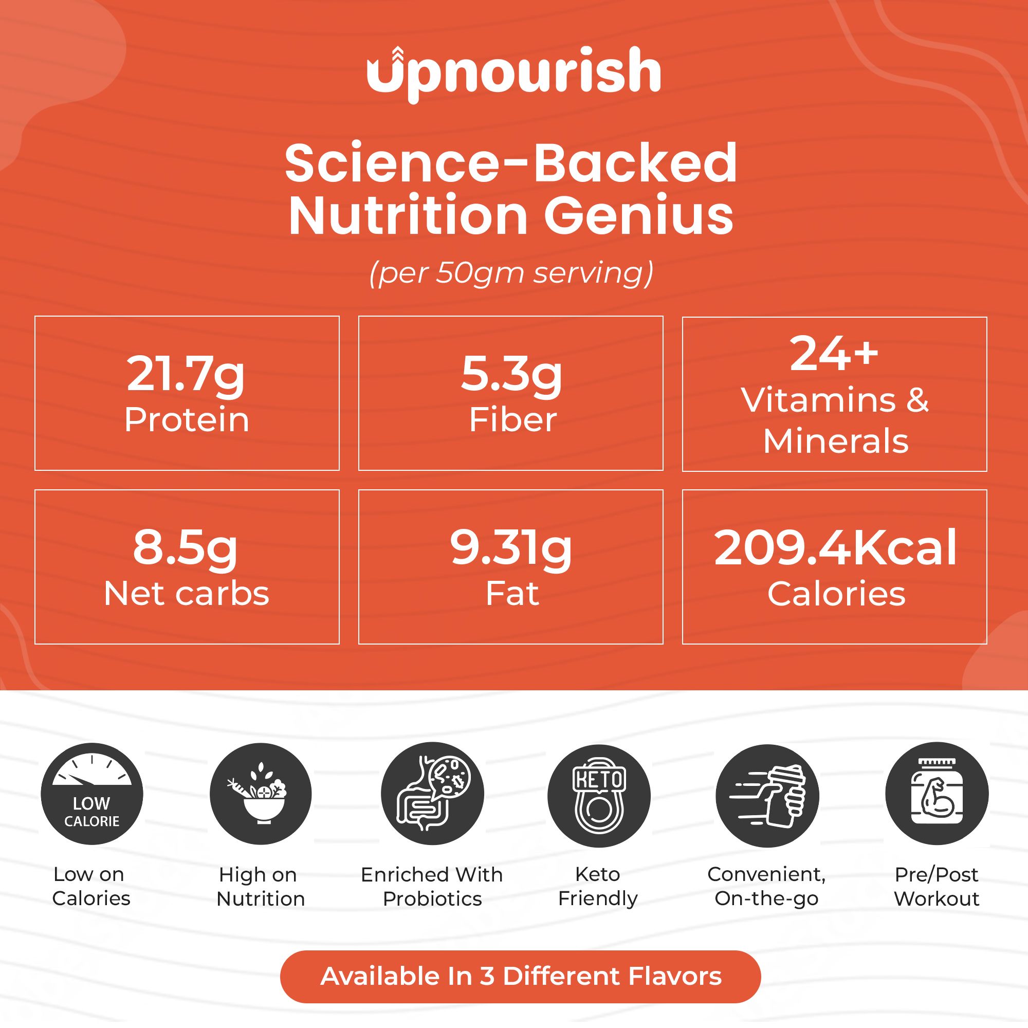 FUEL THE BODY WITH COMPLETE NUTRITION: Our meal replacement smoothies are packed with everything required —21.7g of high protein, 24+ essential vitamins & minerals along with 5.3g of fibre, designed to keep the body energised, lean, & focused.