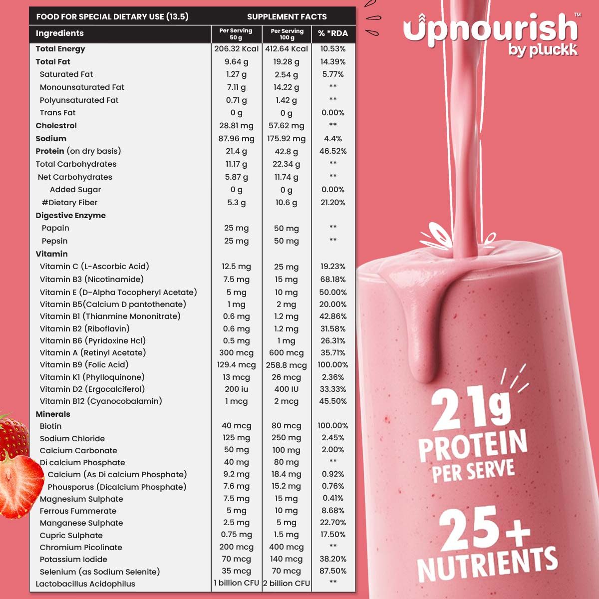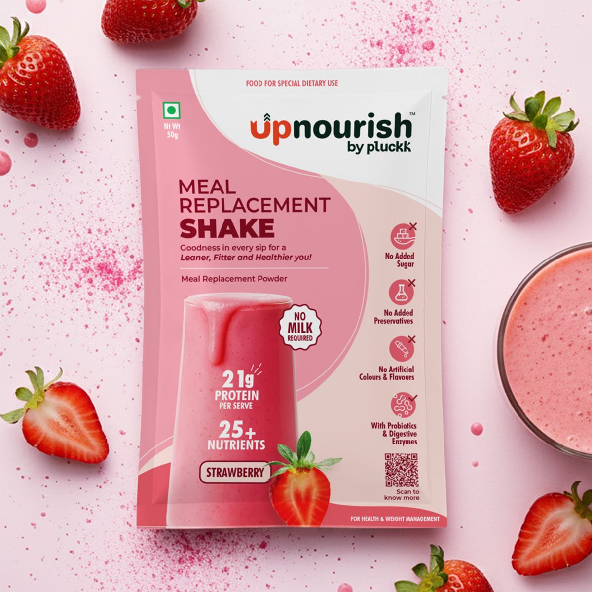 Sip on the taste of real strawberries in this refreshing Meal Replacement Shake, formulated by expert nutritionists for balanced nutrition and effective weight management. Naturally sweetened with Stevia and Monk Fruit, with no added sugar, preservatives, or artificial ingredients. Enriched with probiotics and digestive enzymes to support gut health and keep you feeling light and energized.