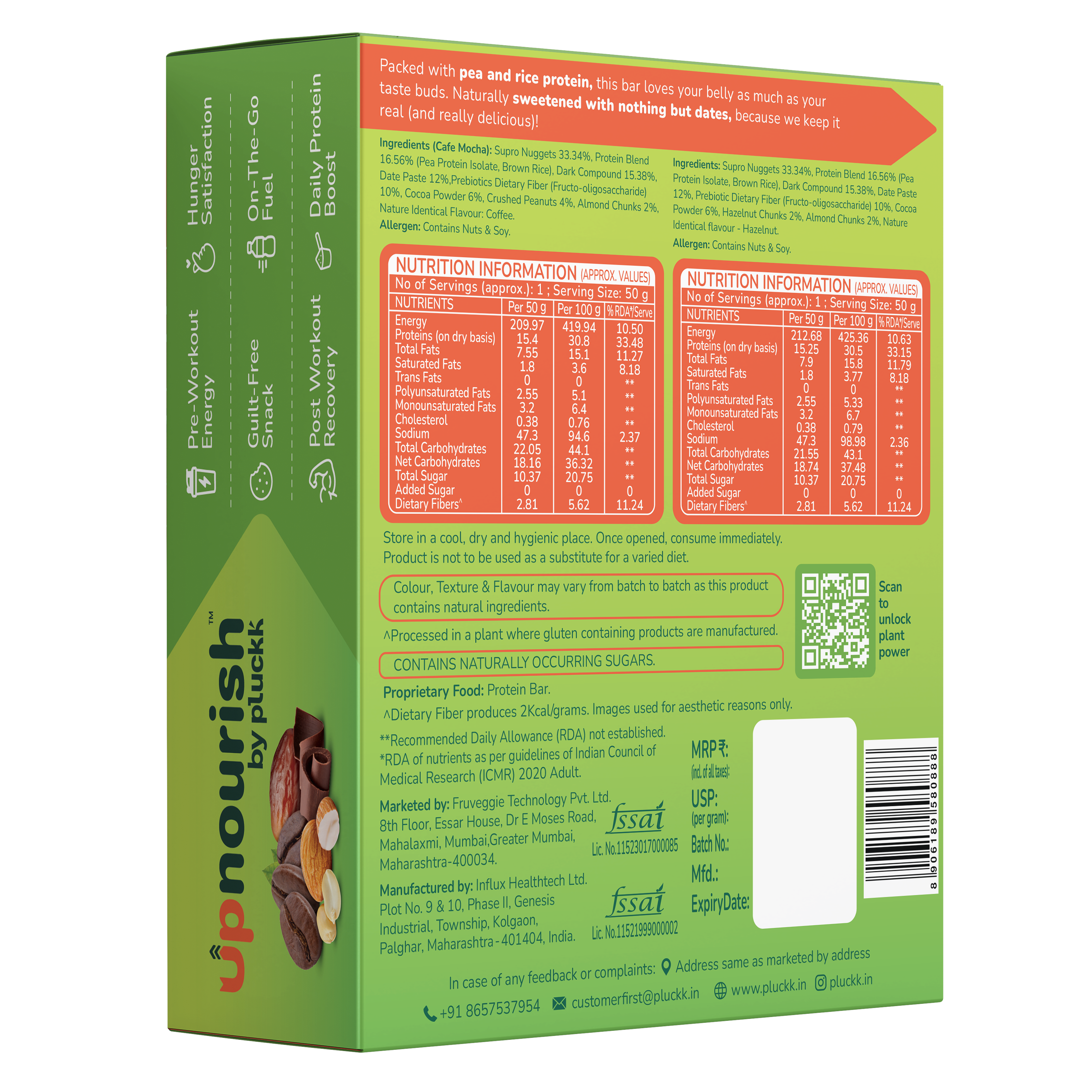 - 15g high-quality plant protein from peas and brown rice
