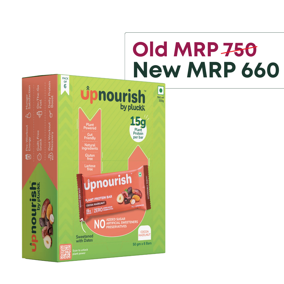 The rich hazelnut flavor perfectly balances with the decadent chocolate, making Upnourish Cocoa Hazelnut bar a guilt-free indulgence on the go. Upnourish bars - fueling your fitness, one bar at a time!