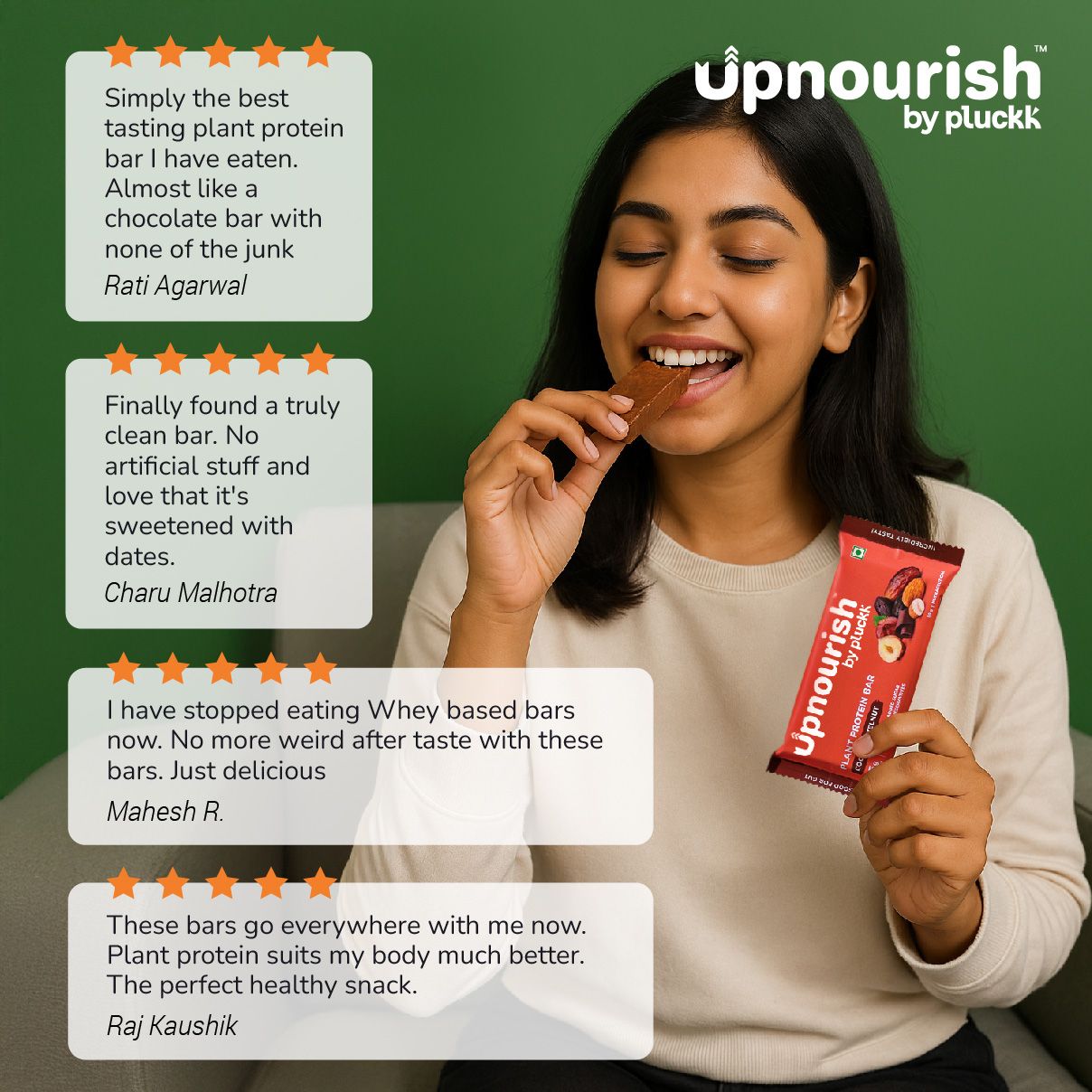 Elevate your protein game with our Plant Protein Bar - made with natural ingredients, light on the gut, packed with peanuts & hazelnuts for the perfect crunch, and no artificial sweeteners, preservatives, or added sugar.
