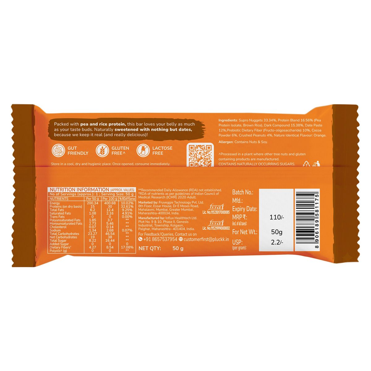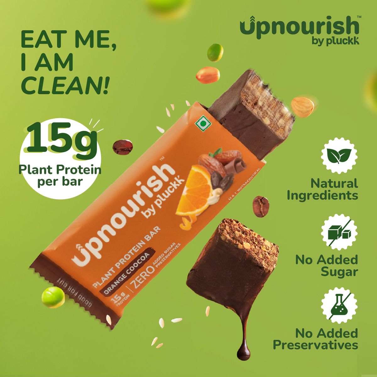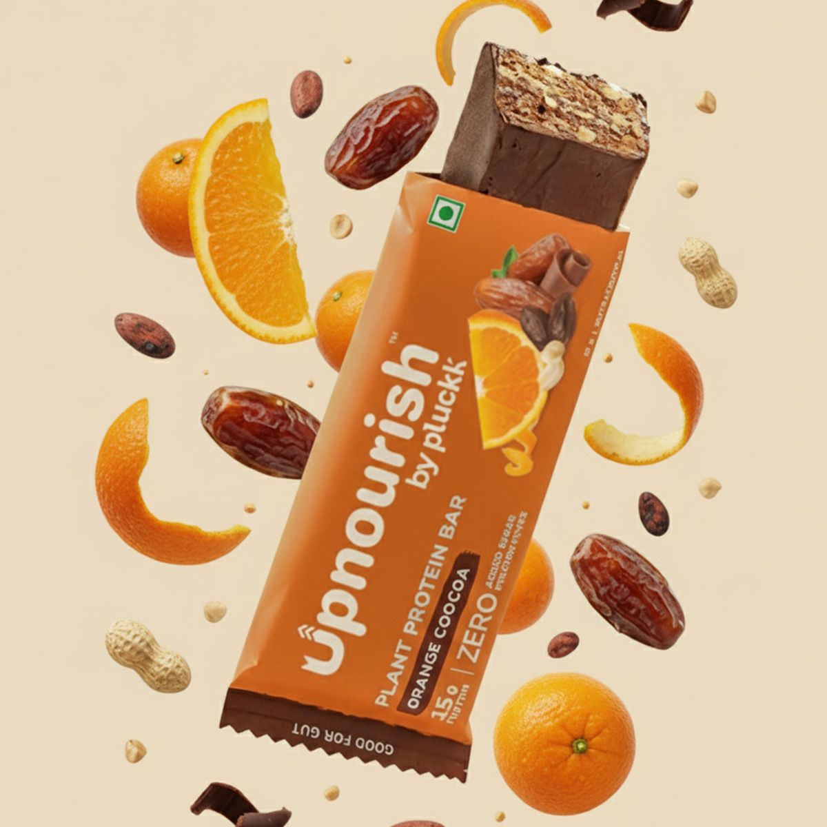 Experience the vibrant burst of real orange blended with rich, smooth cocoa in this perfectly balanced Plant Protein Bar. Crafted from natural ingredients and packed with crunchy roasted peanuts, it’s light on the gut yet satisfyingly wholesome. Naturally sweetened and free from artificial sweeteners, preservatives, and added sugar, it gives you clean energy you can trust. The refreshing citrus notes lift your senses while the chocolatey richness keeps every bite indulgent, a guilt-free treat that fuels your active lifestyle.