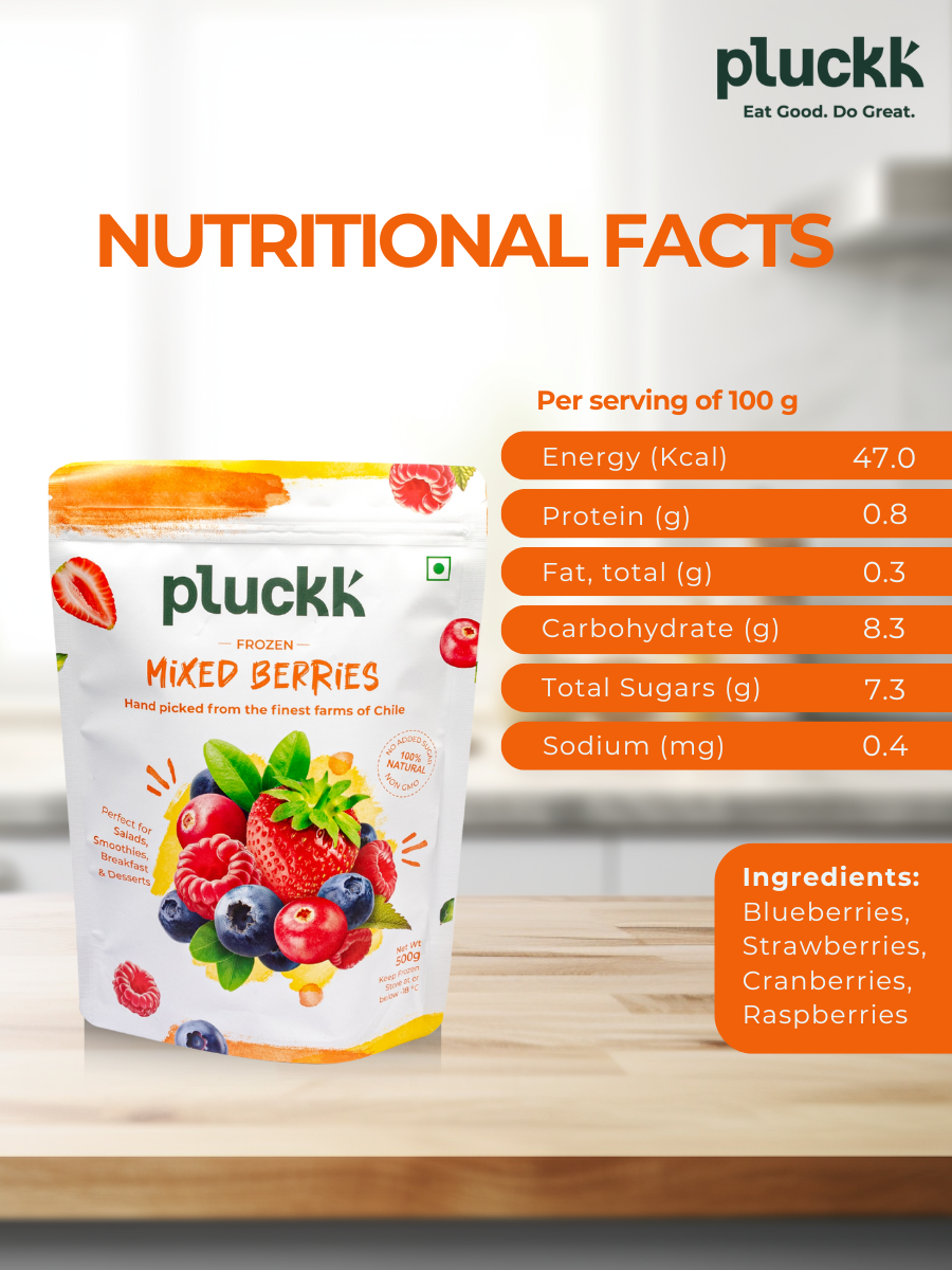 This dream team of strawberries, raspberries, cranberries, and blueberries is here to bring all the flavour vibes. Handpicked in Chile and flash-frozen at peak ripeness, they offer the perfect blend of sweet, tangy, and juicy flavours that provide the ultimate refreshment. Blend into your smoothies, brighten up your salads, or add that WOW! factor to your desserts. Whether you’re snacking on the go or crafting something in the kitchen, our Frozen Mixed Berries are here to keep things fresh and fun with a medley of flavours!
