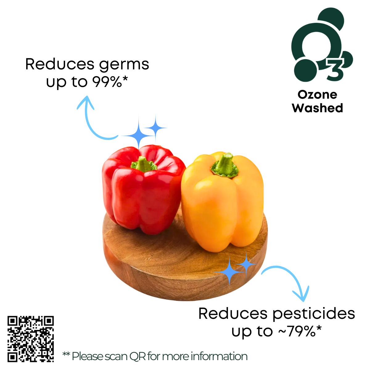 - Ozone Washed to remove germs and extend shelf life