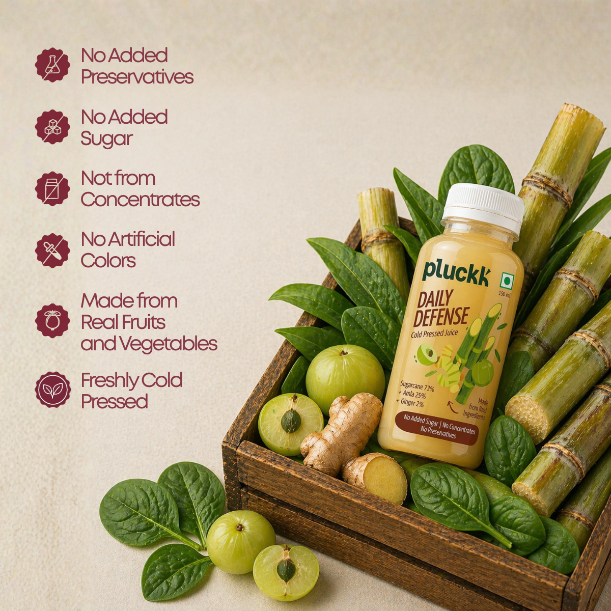 Fresh, zesty, and naturally fortifying - Pluckk's Sugarcane Amla Ginger juice is your daily shield, pressed for maximum vitality.