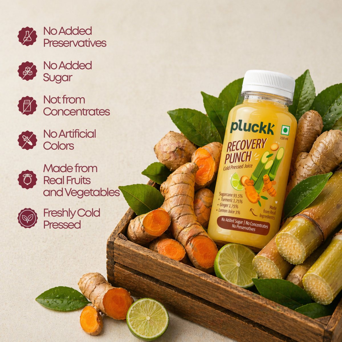 Warm and powerfully restorative - Pluckk's Sugarcane Turmeric Ginger juice is your daily recovery elixir, pressed for maximum healing strength.