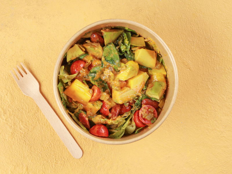 With crunchy greens, protein-rich beans, sweet corn, and classic Caesar flavours, this salad brings together freshness, texture, and familiar comfort in every bite.