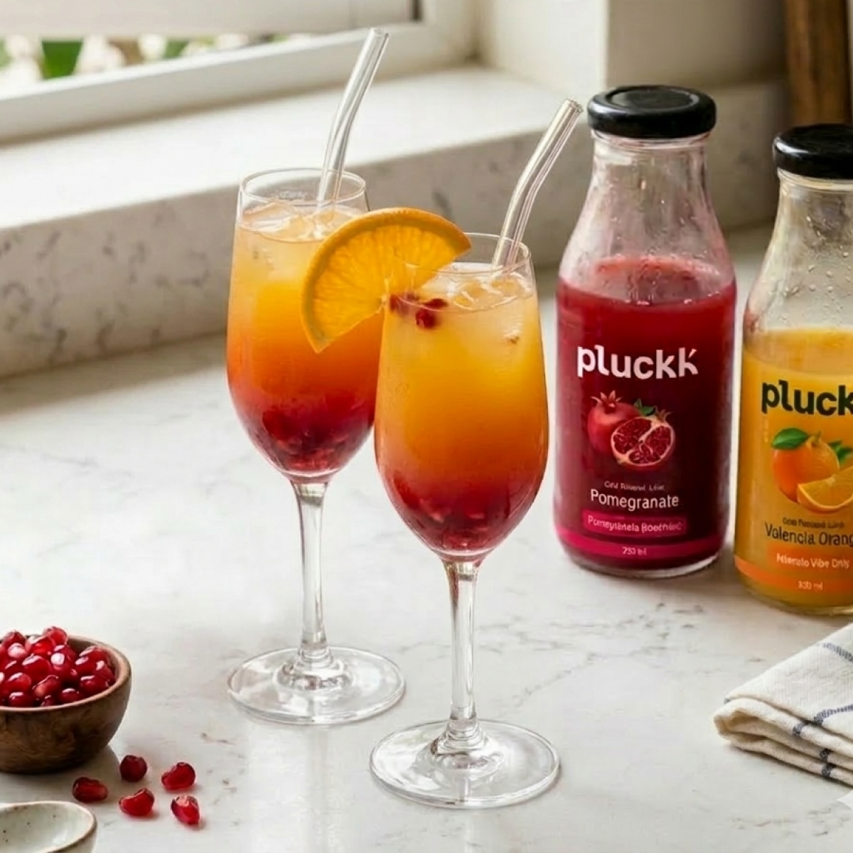 ➤ Chill the Pluckk Orange Juice and Pluckk Pomegranate Juice in the refrigerator.