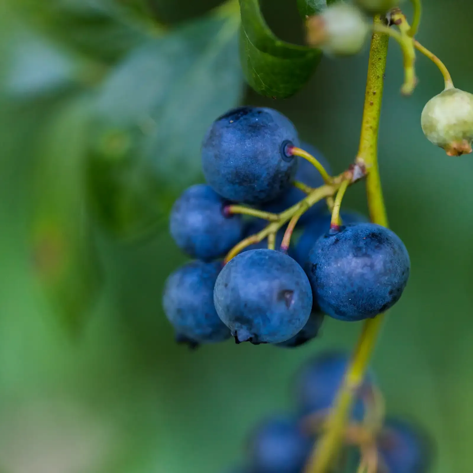 Physical Characteristics Small, round berries typically 0.2-0.6 inches in diameter. They have a smooth, waxy surface with a crown-like indent at the top. The deep blue-purple berries have a powdery white bloom when fresh. Inside, the flesh is pale green to light blue, containing tiny seeds.
