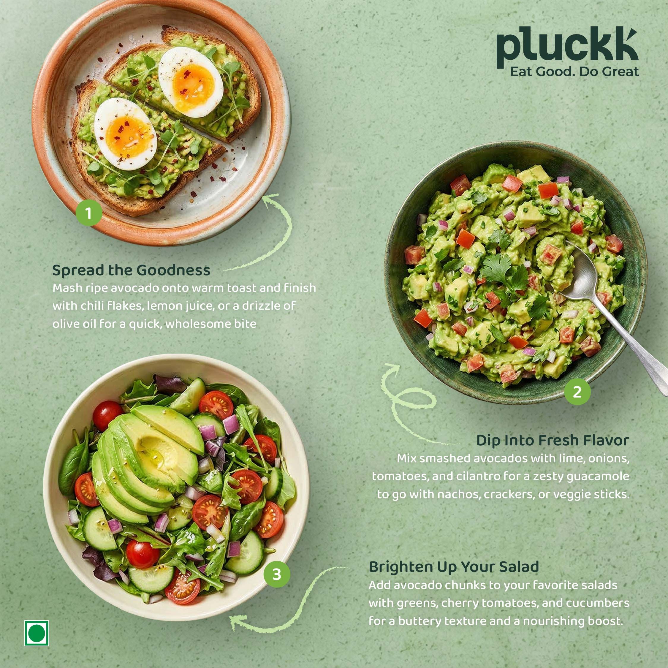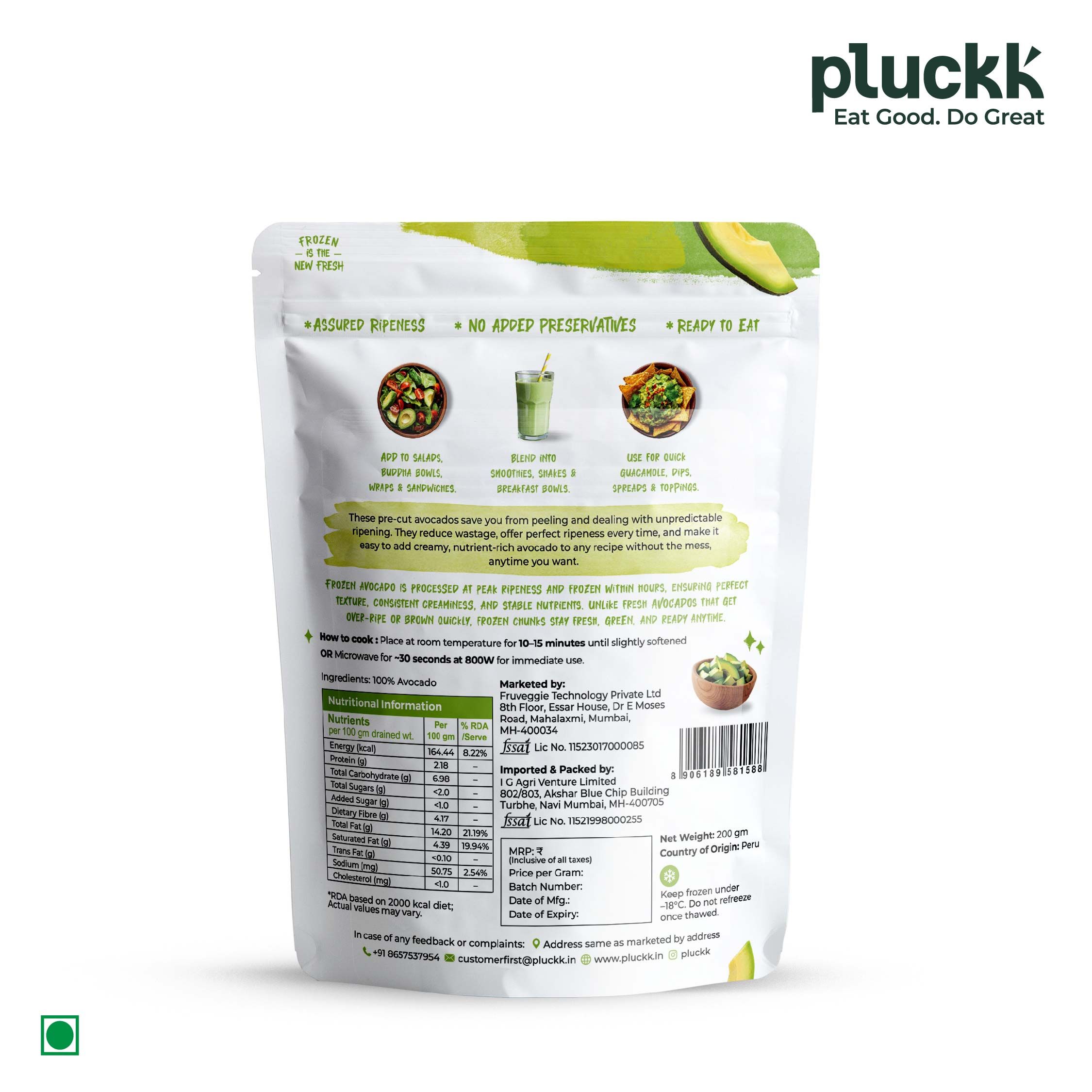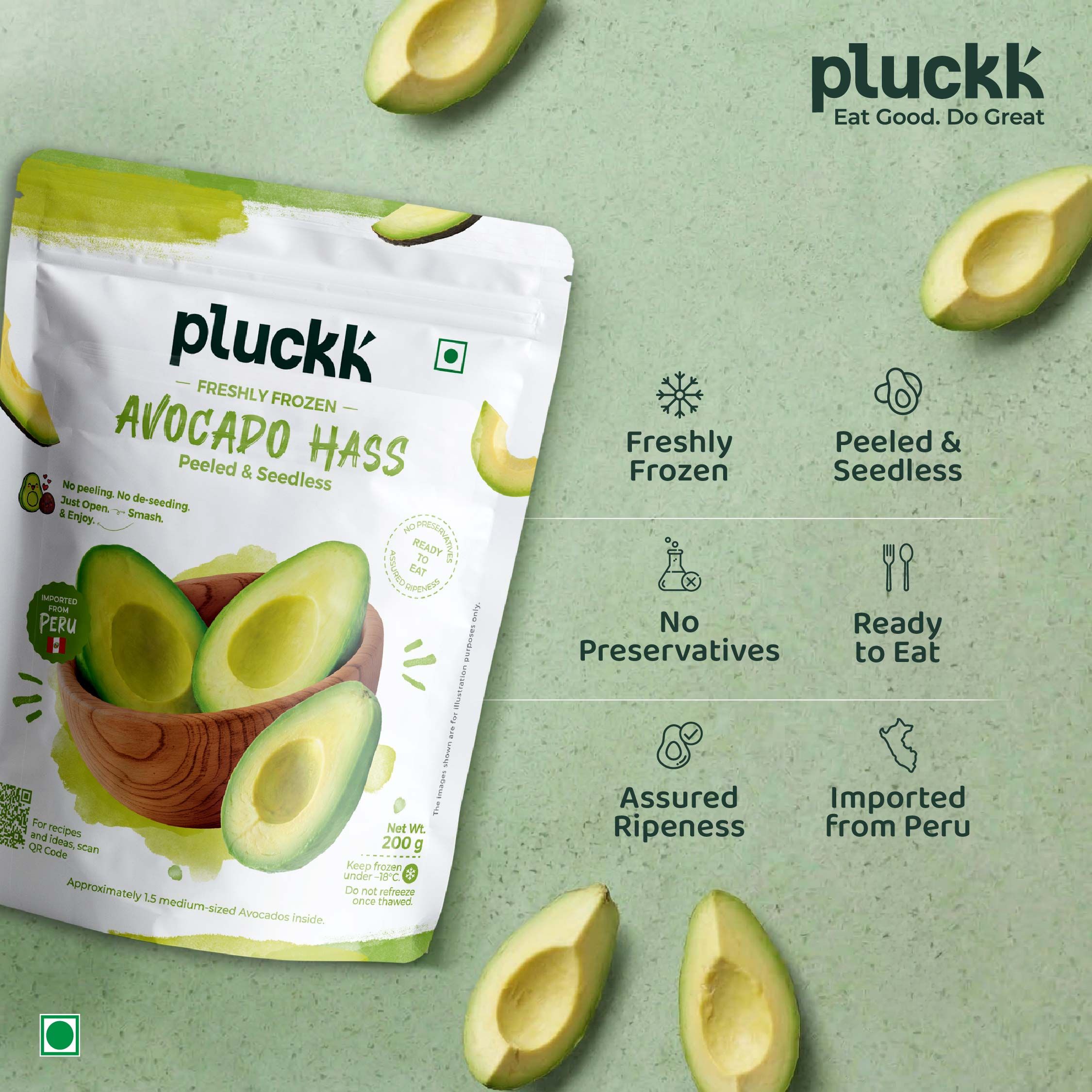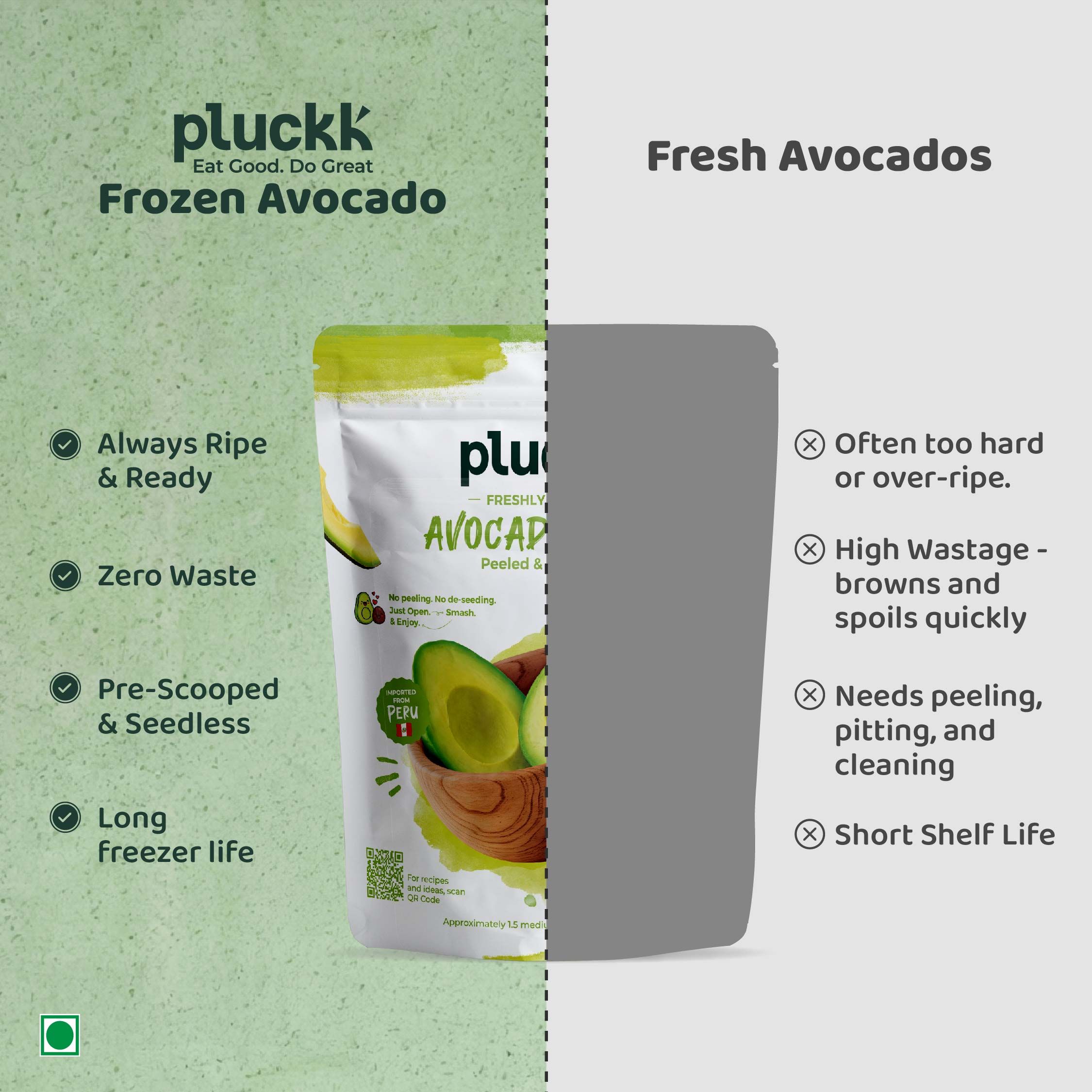 Introducing Pluckk Avocado Hass (Peeled & Seedless) - your shortcut to perfectly ripe, creamy avocado anytime you want it. We’ve done the heavy lifting of sourcing, peeling, and de-seeding the finest Peruvian Hass avocados, then flash-freezing them at peak ripeness to lock in their buttery texture and nutritional value.
