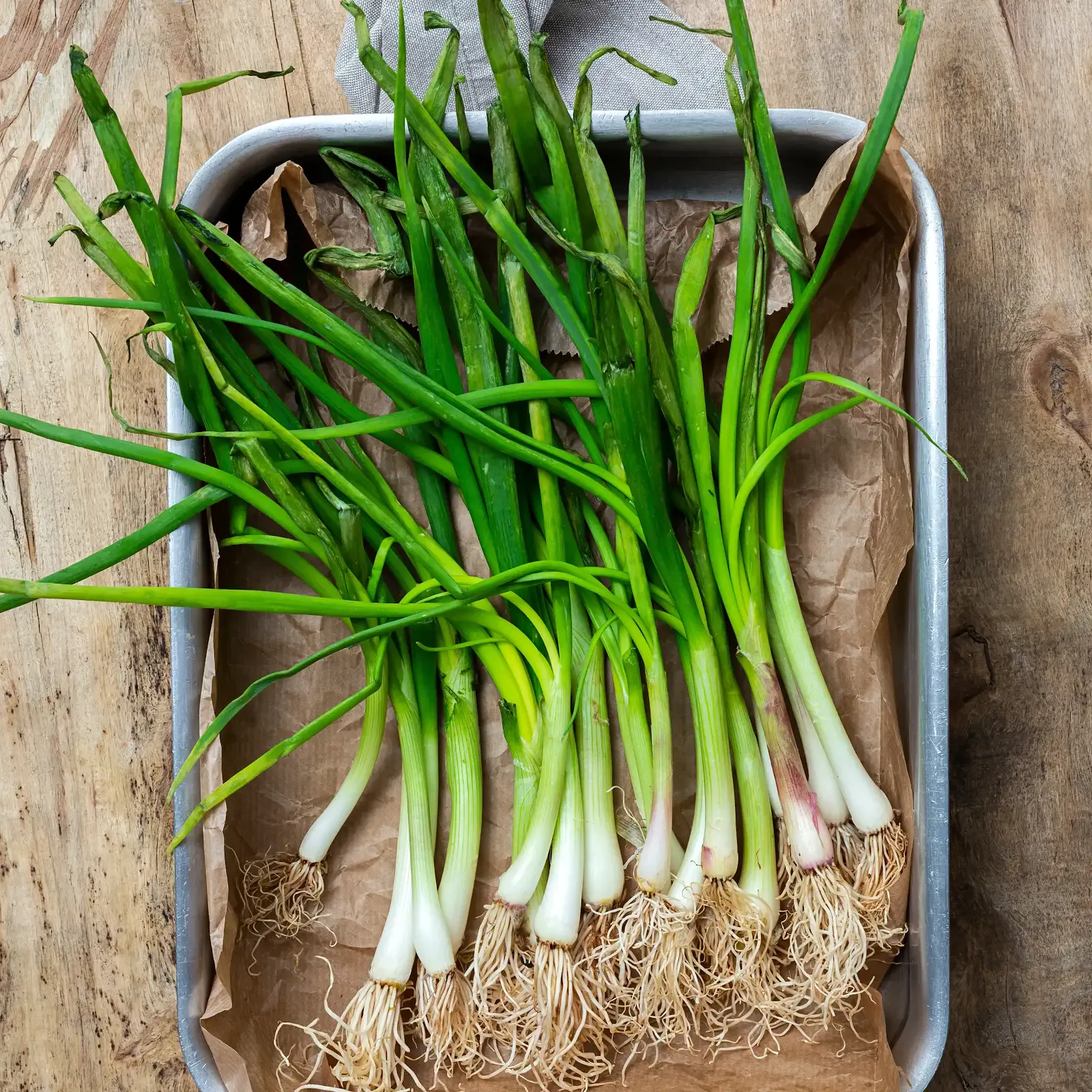 Spring onions are crisp, succulent, and smooth in terms of texture. On the palate, the bulb is mild and onion-like, and it is slightly more pungent compared to the green stalk.